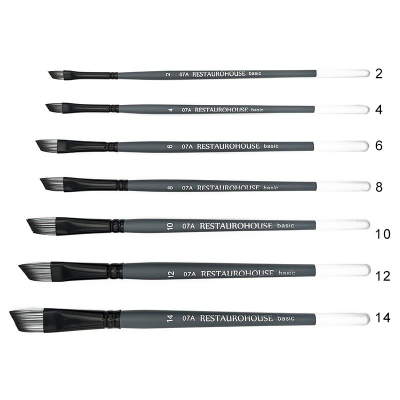 Pędzel serii 07A nr 12. Syntetyczny, ukośnie ścięty pędzel marki Restaurohouse.