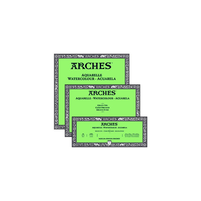 Papier do akwareli Arches jest powszechnie uważany za jeden z najlepszych na świecie. Jest on bezkwasowy, pozbawiony optycznych środków wybielających oraz zabezpieczony przed pleśnią. Występuje w 3 fakturach powierzchni: drobnoziarnistej – cold pressed, gruboziarnistej – rough i satynowej – hot pressed.