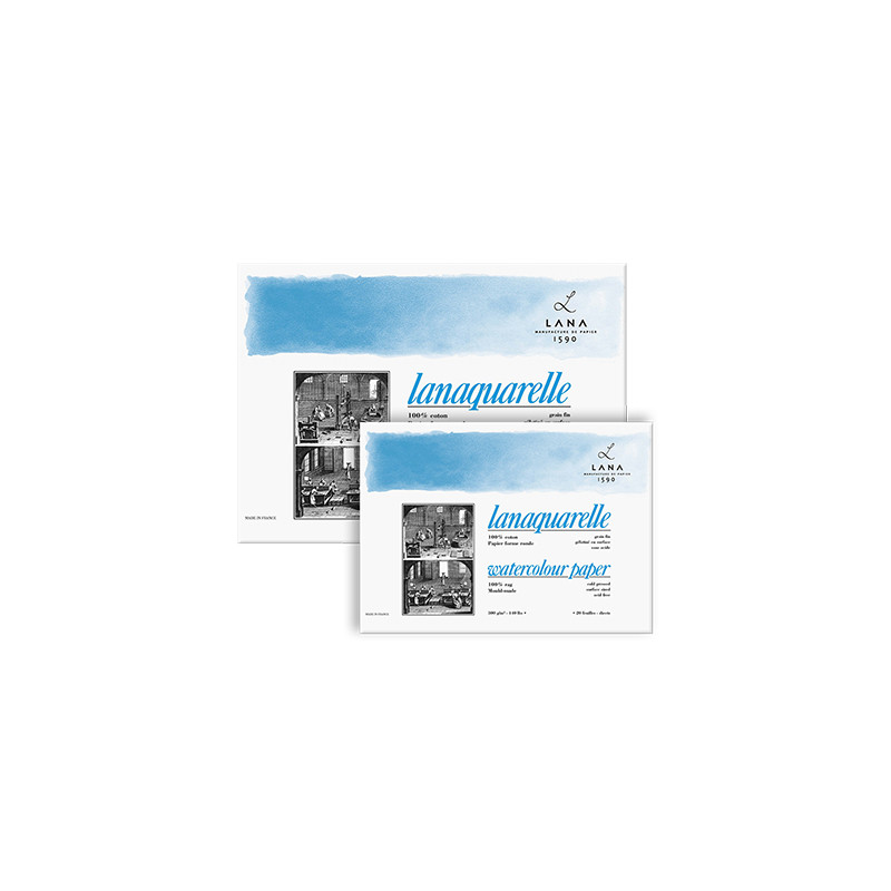 Profesjonalny blok do farb akwarelowych Lanaquarelle, wykonany w 100% z bawełnianych włókien. Cold pressed, 20 arkuszy, gramatura 300 g/m², 18 x 26 cm. Więcej szczegółów