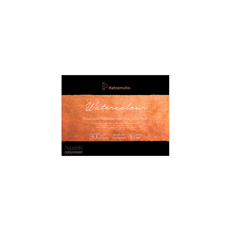 The Collection Watercolour 300 – blok do farb akwarelowych marki Hahnemühle. 10 arkuszy w rozmiarze 36 x 48 cm, gramatura 300 g/m². Cold Pressed (drobne ziarno).
