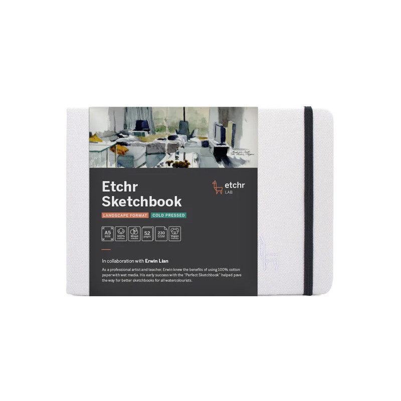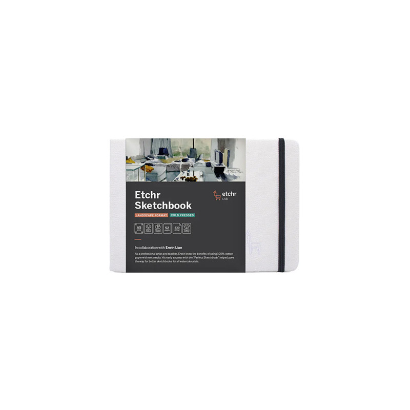 Etchr Sketchbook Landscape, cold pressed – szkicownik akwarelowy z papierem w 100% bawełnianym.