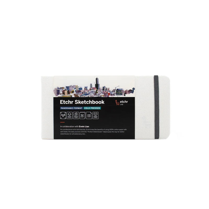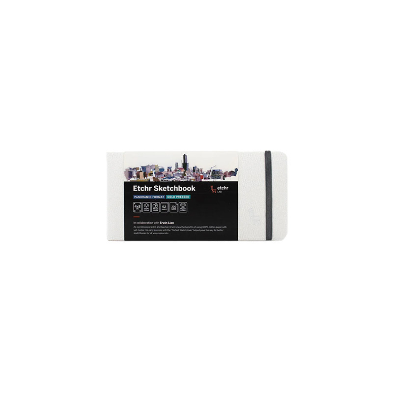 Etchr Sketchbook Panoramic, cold pressed – szkicownik akwarelowy z papierem w 100% bawełnianym.