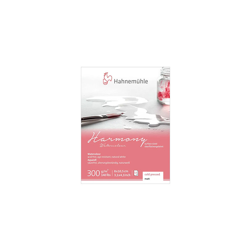 Blok akwarelowy Harmony Hahnemuhle. 12 arkuszy w rozmiarze 8 x 10.5 cm, gramatura 300 g/m².