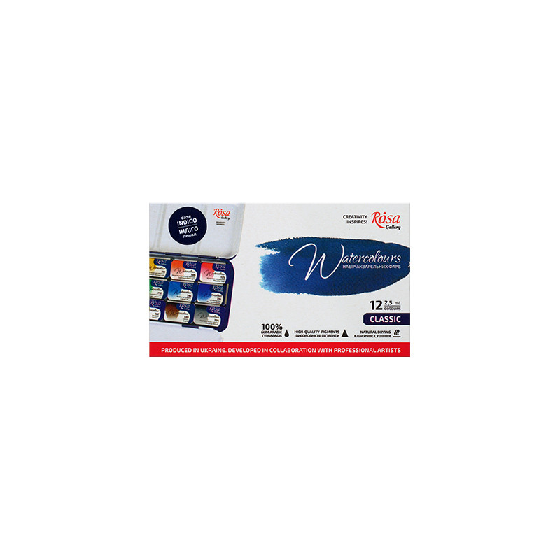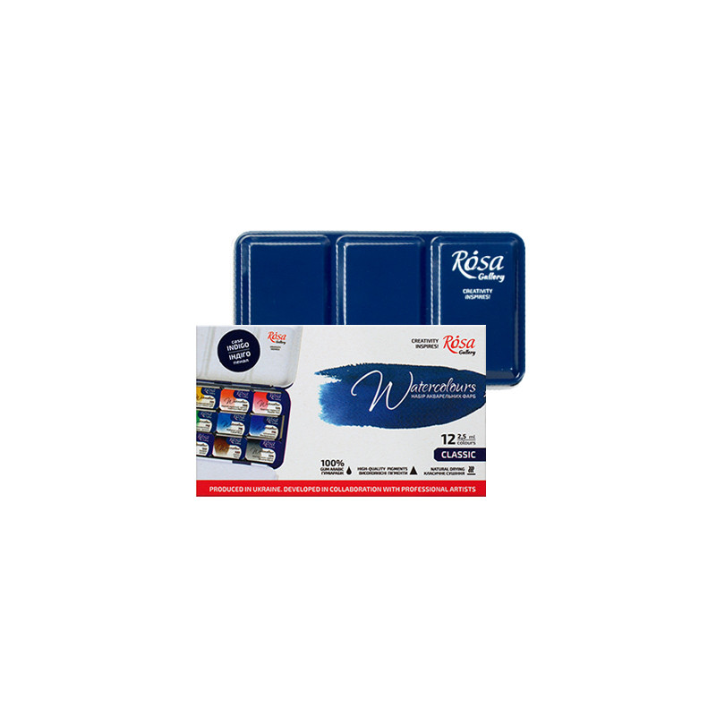 Classic - zestaw farb akwarelowych w pełnych kostkach Rosa Gallery Artists' Watercolour, 12 kolorów.