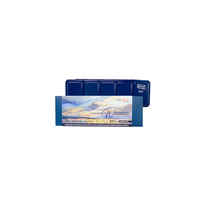 Landscape - zestaw farb akwarelowych w pełnych kostkach Rosa Gallery Artists' Watercolour, 21 kolorów.