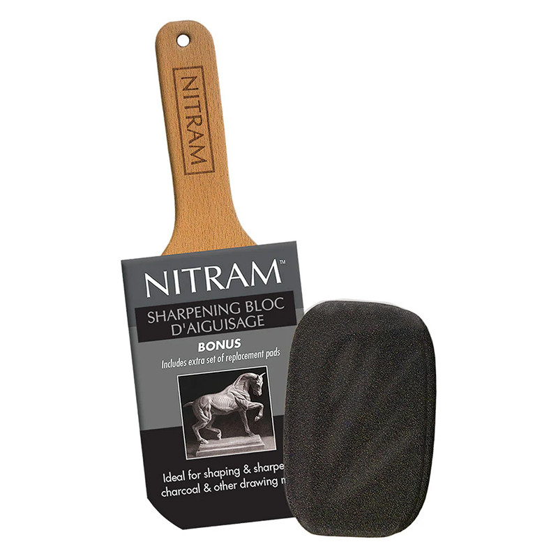 Sharpening Block Nitram, blok papieru ściernego na drewnianej obsadce do ostrzenia węgla.