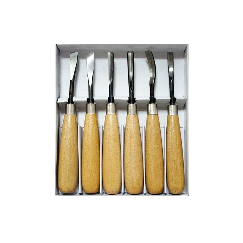 Zestaw 6 profesjonalnych, cienkich dłut do drewna.