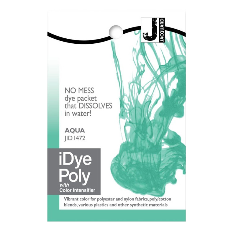 472 Aqua iDye Poly Jacquard – barwnik do tkanin syntetycznych, takich jak: poliester, nylon, plastik, powłoki uretanowe itp. 14 g barwnego proszku w wodorozpuszczalnej saszetce.