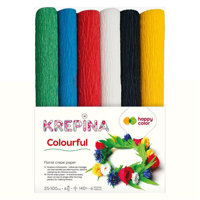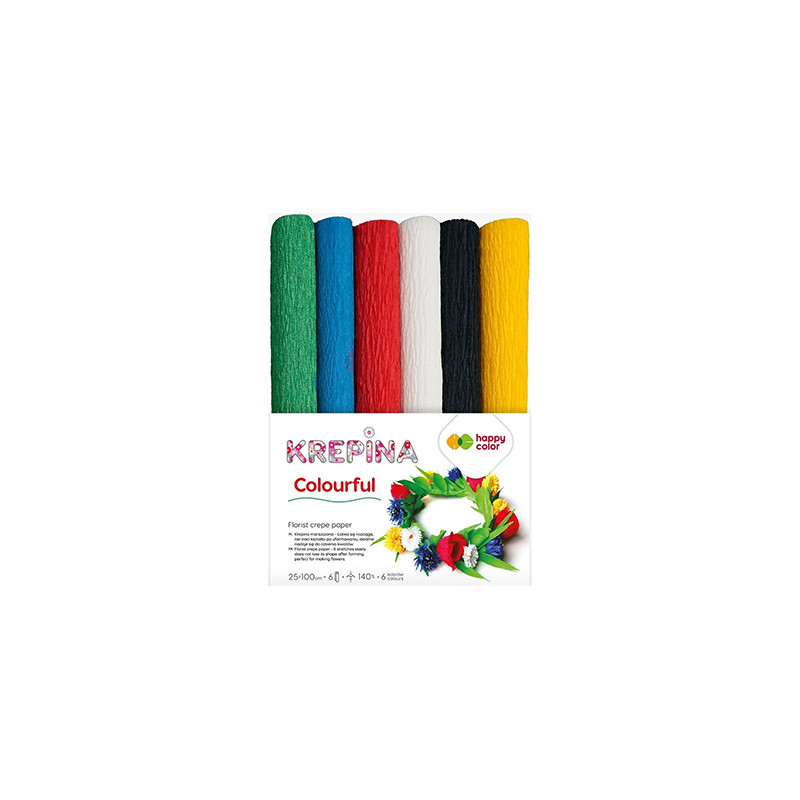 Krepina Colorful – krepina marszczona marki Happy Color. 6 kolorów w zestawie.