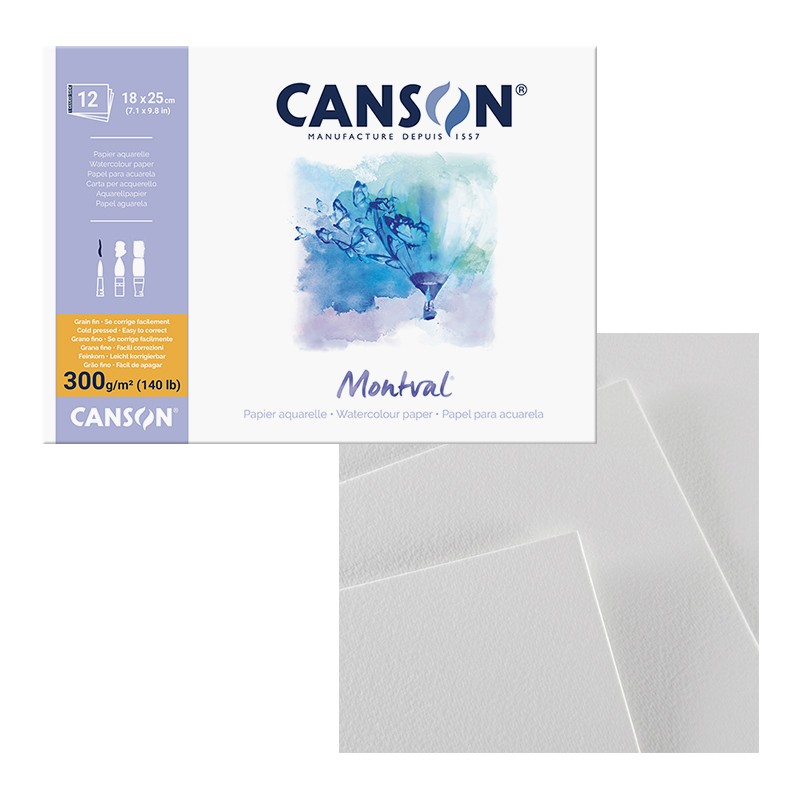 Montval to papier opracowany przez malarza Gasparda Maillol, bratanka rzeźbiarza Aristide Maillol i produkowany przez firmę Canson na jego zamówienie w początkach XX wieku. Od tamtego czasu, proces jego produkcji został udoskonalony. Bezkwasowy, trwały, zabezpieczony przeciwko pleśni i wolny od wszelkich wybielaczy optycznych - najwłaściwszy papier do nauki akwareli. Jedną z najważniejszych zalet papieru Montval jest możliwość dokonywania poprawek. Retusze są łatwe do wykonania, dzięki możliwości wymywania kolorów wodą z pomocą gąbki lub pędzla. Po farbie nie pozostają ślady, a powierzchnię można na nowo wykorzystać do malowania. Arkusze wytrzymują również poprawki przez wydrapywanie, nie mechacąc się. Dzięki tym właściwościom jest to papier szczególnie wygodny w użytkowaniu. Produkt polecany profesjonalistom, jak i zamożniejszym debiutantom, którzy docenią wysoką jakość prezentowanego modelu.