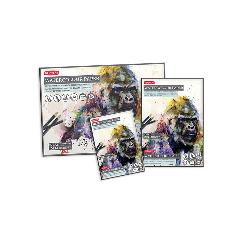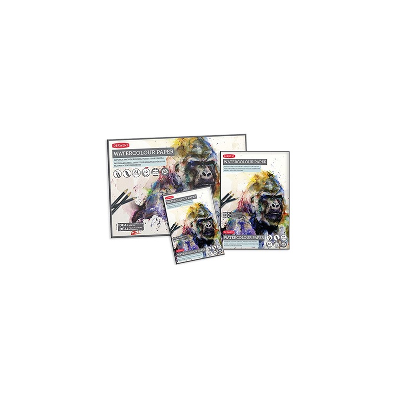 Blok do farb akwarelowych marki Derwent A5. 12 arkuszy o gramaturze 300g/m². Niezwykle gładki, bezkwasowy biały papier - dedykowany wodorozmywalnym mediom takim jak kredki akwarelowe czy tusze w kredce. Przy mocnym nawilżeniu papieru zalecane jest jego naciągnięcie. Dostępny w różnych formatach.