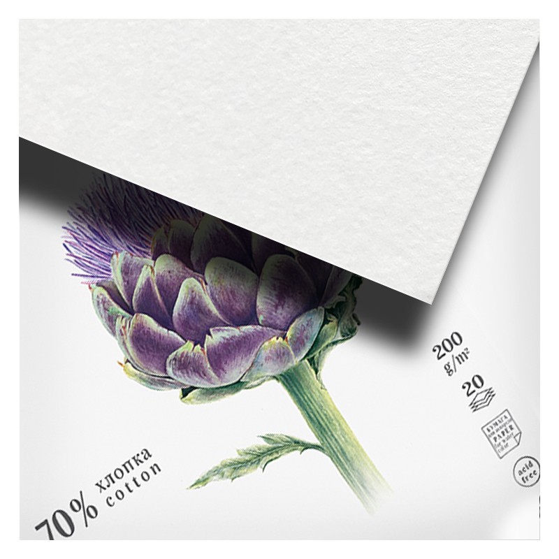 Artichoke blooms – blok akwarelowy marki Palazzo. 20 arkuszy, gramatura 200 g/m², rozmiar: 14,8 x 21 cm. W 70% bawełniany.