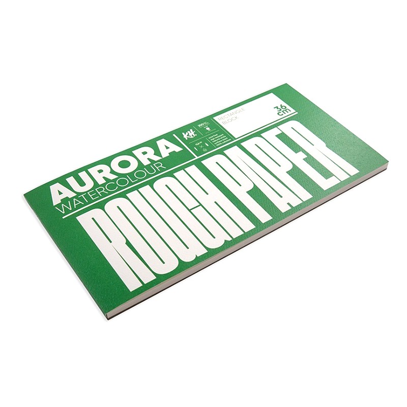 Blok do akwareli Aurora Watercolour Rough RAW. 20 gruboziarnistych arkuszy w rozmiarze 18 x 36 cm. Gramatura: 300 g/m².