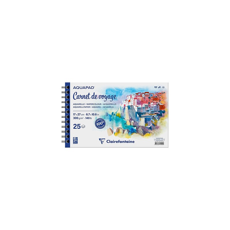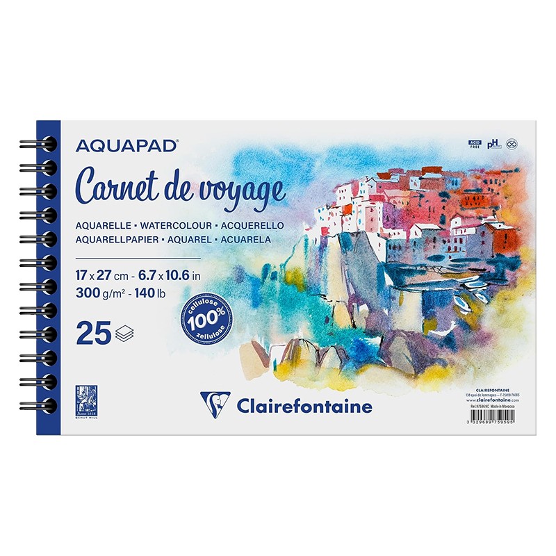 Album akwarelowy na spirali Aquapad 'Carnet de Voyage' marki Clairefontiane przeznaczony do farb akwarelowych i wodnych.
