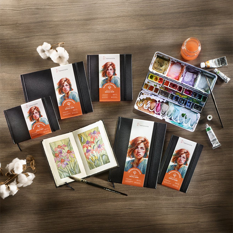 Watercolour Book Deckle Edge – blok w twardej oprawie z bawełnianym papierem przeznaczonym do farb akwarelowych. 30 arkuszy o nieregularnych brzegach.