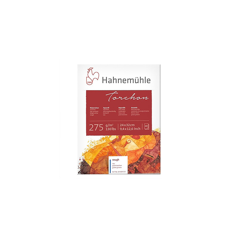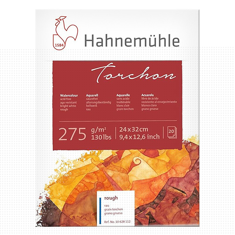 Blok do akwareli Torchon marki Hahnemühle. 20 białych gruboziarnistych arkuszy w rozmiarze 24 x 32 cm, gramatura: 275 g/m².