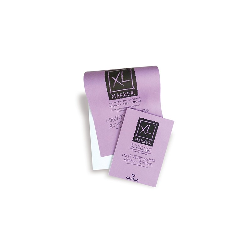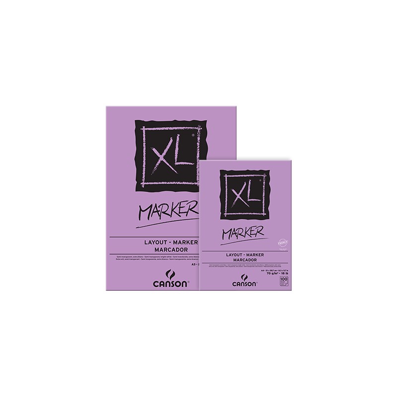 Blok do pisaków i markerów serii XL Marker firmy Canson. Zawiera 100 arkuszy śnieżnobiałego papieru w formacie A4(21 x 29,7cm) i gramaturze 70g/m².