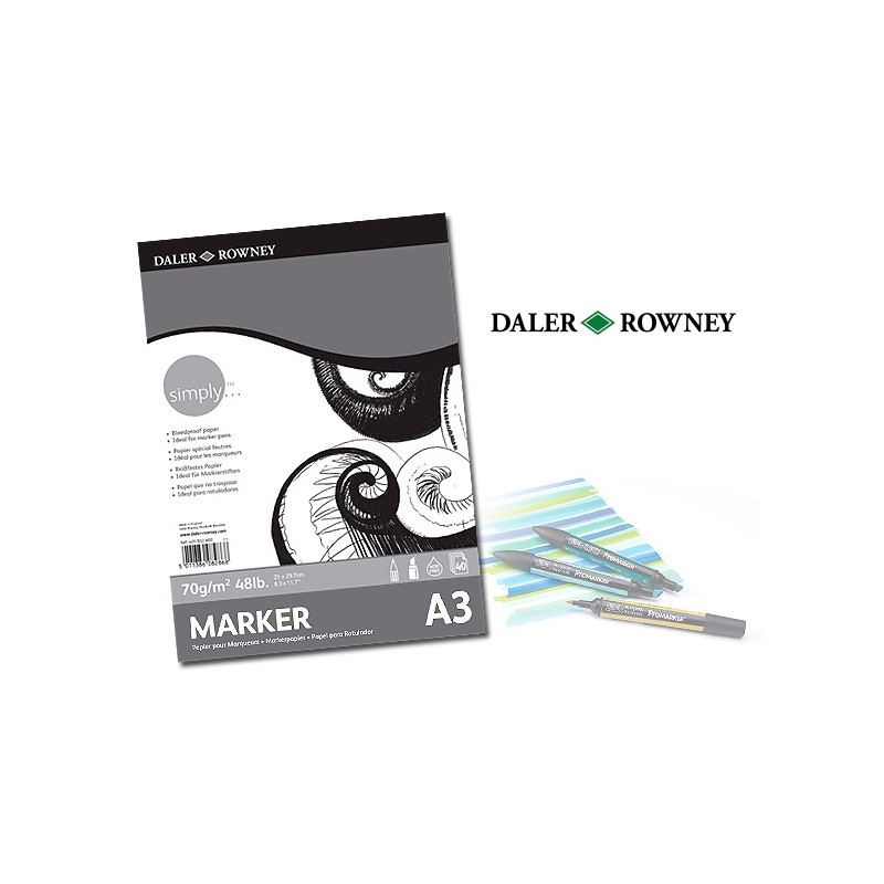 Blok angielskiej firmy Daler-Rowney przeznaczony typowo do rysunku markerami alkoholowymi i pisakami. Odpowiedni skład papieru zapobiega przebijaniu linii na drugą stronę. Idealnie chłonie tusz, a kolory nie blakną i nie płowieją. Polecany także do szkiców ołówkiem - idealnie biały, delikatny, bezkwasowy papier zadowoli każdego hobbystę i studenta. Dostępny w formatach A3(29,7 x 42cm) i A4(21 x 29,7cm). Zawiera 40 arkuszy w gramaturze 70 g/m².