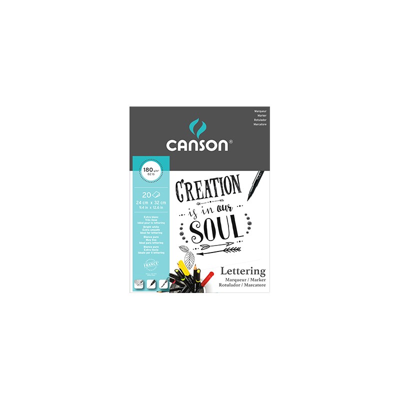 Blok do markerów Lettering Marker marki Canson. Rozmiar 24 x 32 cm. 20 arkuszy o gramaturze 180g.