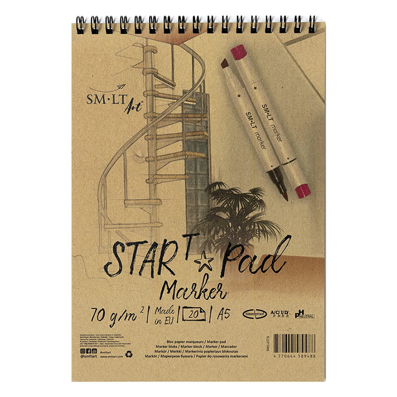 Blok marki SMLT serii START przeznaczony do markerów alkoholowych. Blok na spirali w formacie A5, 20 arkuszy, gramatura 75 g/m². Więcej szczegółów