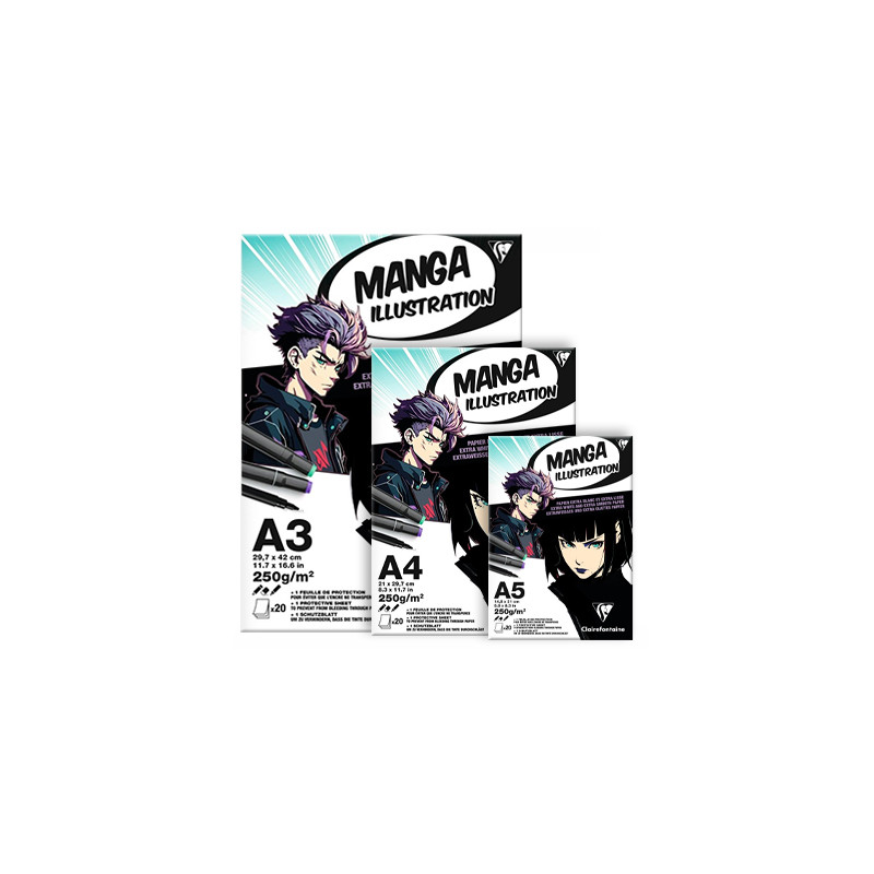 Manga Illustration Clairefontaine – blok do markerów i rysunku. 20 arkuszy w formacie A3, o gramaturze 250 g/m².