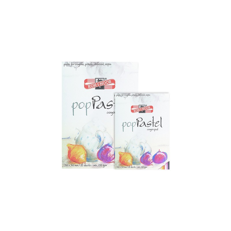 Pop Pastel Crayon Pad – blok do pasteli marki Koh-I-Noor. Kolorowe arkusze papieru barwionego w masie, w formacie 24,5 x 34,5 cm i gramaturze 220 g.