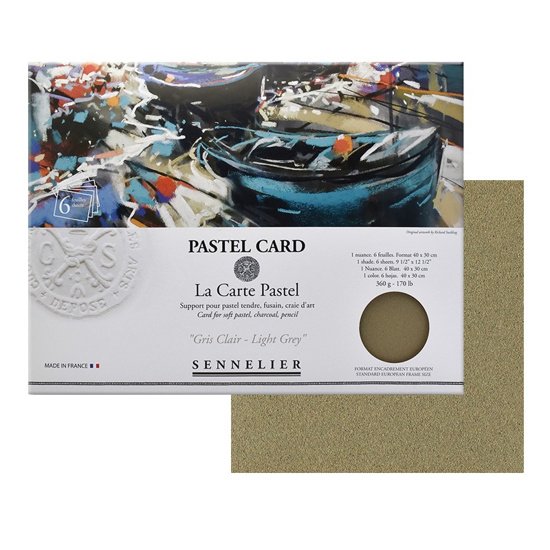 Pastel Card Light Grey – profesjonalny papier do suchych pasteli marki Sennelier. 6 arkuszy w kolorze ciepłej szarości, w formacie 30 x 40 cm.