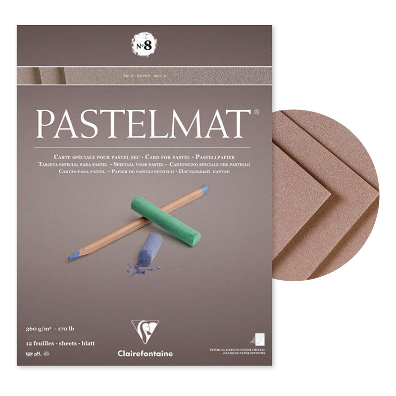 Pastelmat Brown 18 x 24 cm marki Clairefontaine – profesjonalny blok do suchych pasteli. 12 arkuszy w kolorze brązowym o gramaturze 360 g. Więcej szczegółów