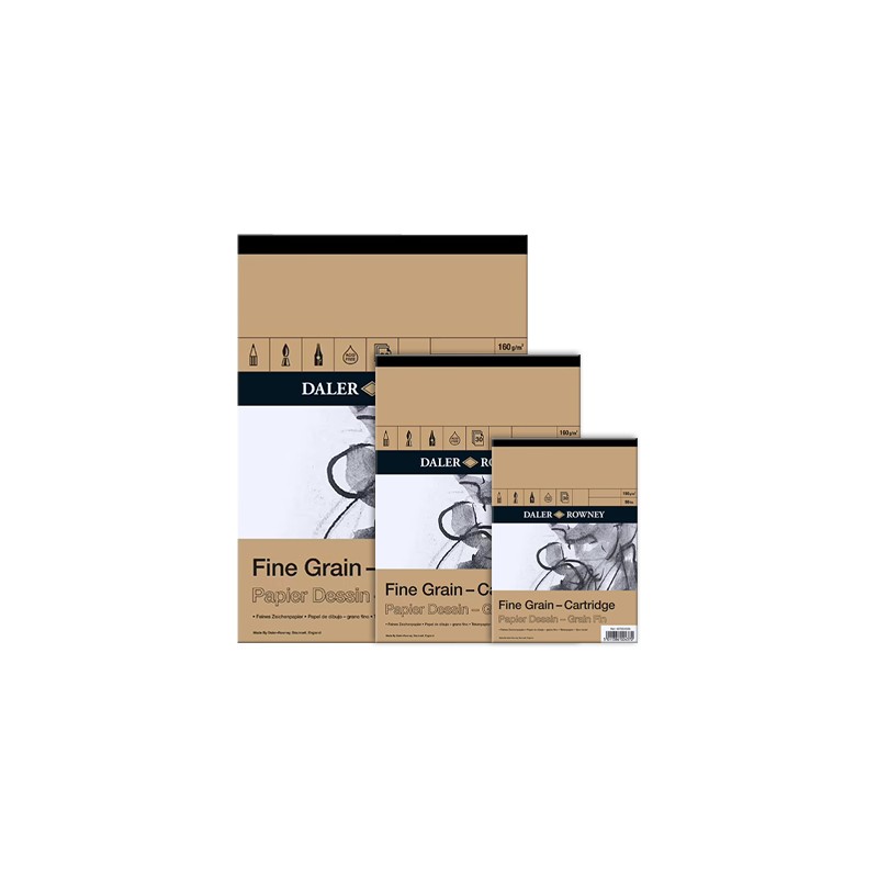 Blok rysunkowy angielskiej firmy Daler Rowney z serii Fine Grain. Biały, bezkwasowy papier o lekko ziarnistej powierzchni. Rozmiar A5 (14,9cm x 21cm), zawiera 30 kartek papieru o gramaturze 160 g/m2. Papier polecany do szkiców i rysunków wykonywanych ołówkiem, kredkami, pędzelkiem oraz tuszem.