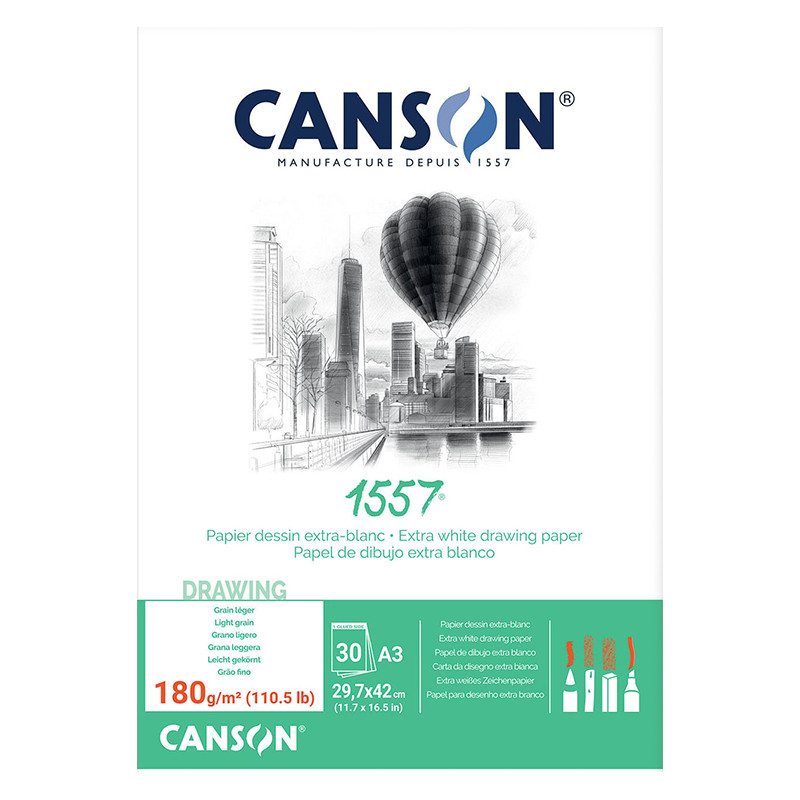Idealnie biały, bezkwasowy papier wykonany z najczystszej celulozy. Klejony w masie, dzięki czemu znakomicie wytrzymuje wielokrotne wymazywanie i korekty. Seria papierów szkicowych i rysunkowych 1557 ®, to efekt 440 letniej tradycji firmy Canson ®, w produkcji papierów dla artystów plastyków.