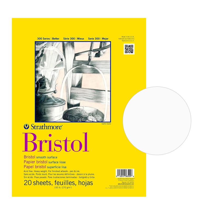 300 Series Bristol Smooth Surface Strathmore – blok do rysunku i suchych technik. 20 arkuszy białego papieru. Rozmiar: 27,9 x 35,6 cm. Gramatura 270 g/m². Więcej szczegółów