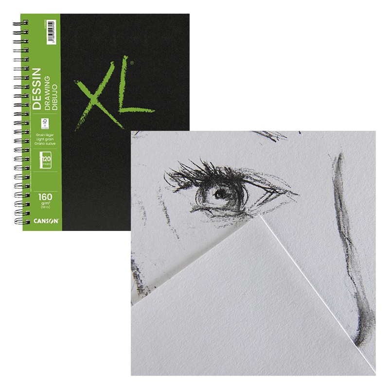Uniwersalny szkicownik marki Canson z lekko ziarnistym, białym papierem przeznaczonym do rysunku i szkicu ołówkiem, węglem oraz pastelami. Wysoka gramatura (160 g) papieru umożliwia pracę także tuszem i piórkiem. Twarda oprawa chroni kartki przez niechcianymi zagnieceniami oraz zabezpiecza blok podczas transportu. Solidną spiralę umieszczono na dłuższym boku – daje to swobodę pracy zarówno w pionie jak i w poziomie. Papier jest bezkwasowy i wysoce odporny na wszelkie korekty i wymazywanie.