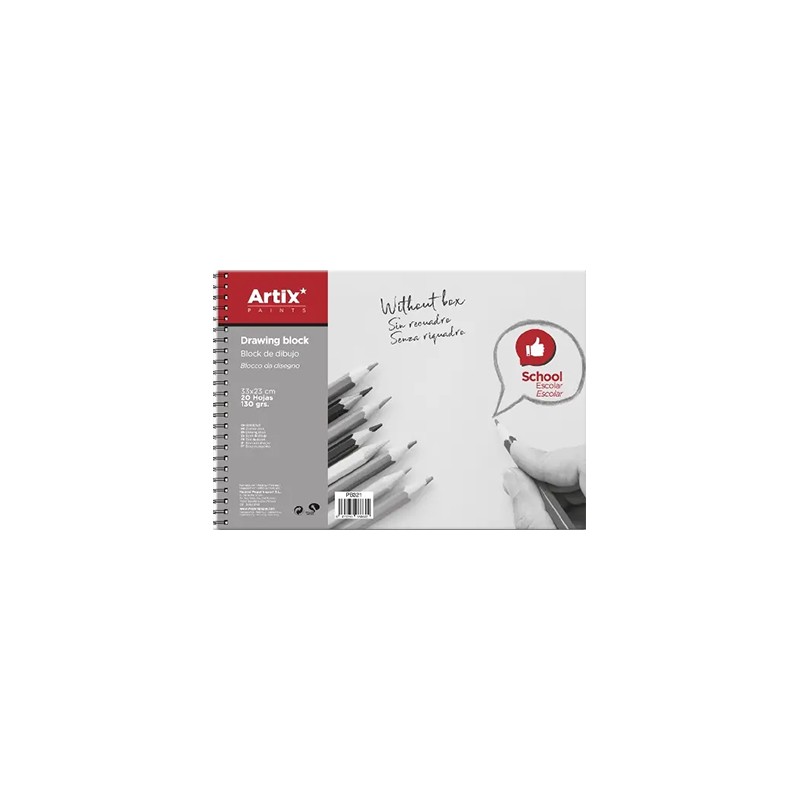 Blok rysunkowy na spirali – Drawing Block Artix. 20 arkuszy na spirali, gramatura 130 g/m2, rozmiar: 23 x 33 cm