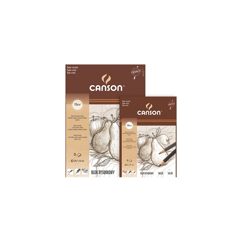Blok rysunkowy. Biały papier o lekko ziarnistej powierzchni, odporny na wielokrotne wymazywanie. Przeznaczony do rysunków i szkiców wykonywanych ołówkiem i węglem oraz tuszu i gwaszu. Blok zawiera 25 arkuszy papieru w formacie A3 (29,7 x 42cm), masa papieru 120 g/m².