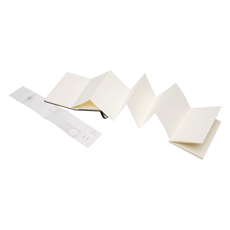 Legendarny szkicownik MOLESKINE album japoński Japanese Album. Klasyczny i uniwersalny design - materiałowa okładka o zaokrąglonych narożnikach, bezkwasowy kremowy papier, wewnętrzna poszerzana kieszeń. Strony połączone na kształt harmonijki. Do technik wodnych, akwareli, gwaszu, tuszu. Produkt posiada certyfikat FSC.