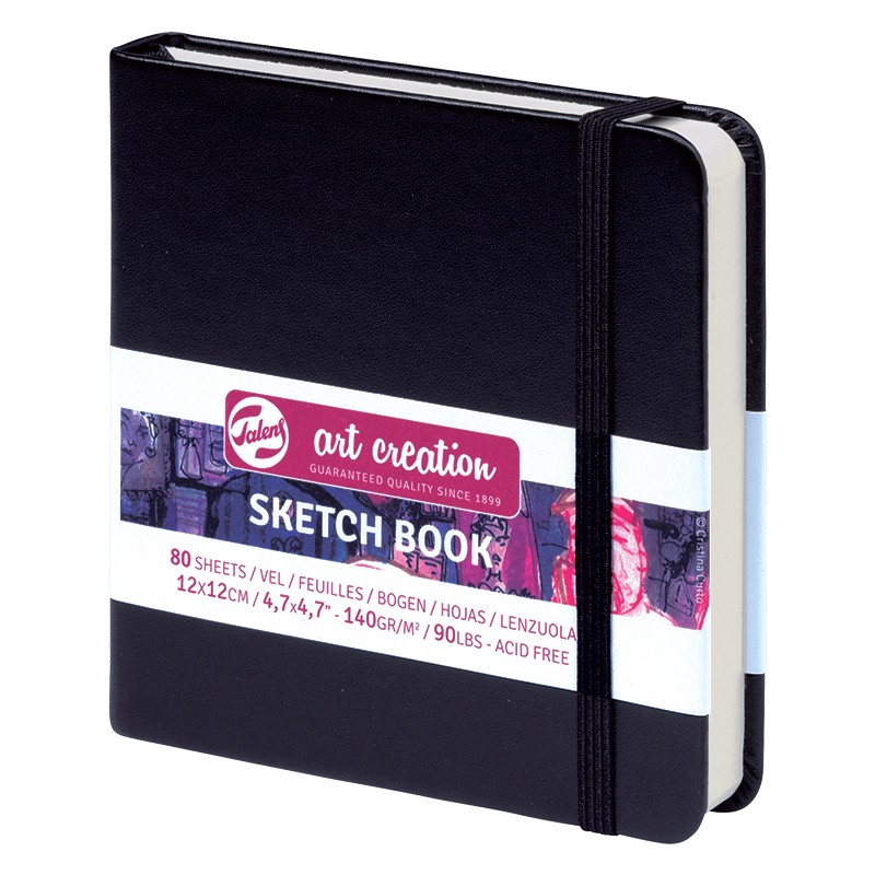 Sketch Book Art Creation – blok szkicowy marki Talens. Czarna, twarda oprawa, zamykany na gumkę. 80 kremowych arkuszy w formacie 12 x 12 cm. Gramatura 140 g. Więcej szczegółów