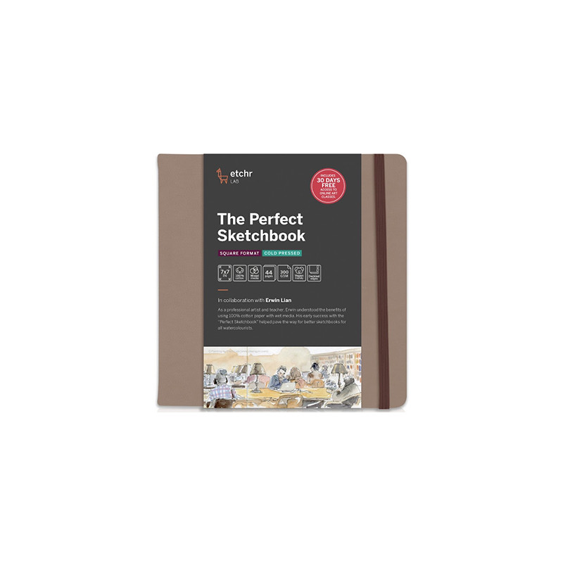 The Perfect Sketchbook Etchr Cold Pressed Square Format Deckled edges. 22 białe arkusze, gramatura 300 g/m², 100% bawełna, cold pressed. Postrzępione krawędzie.