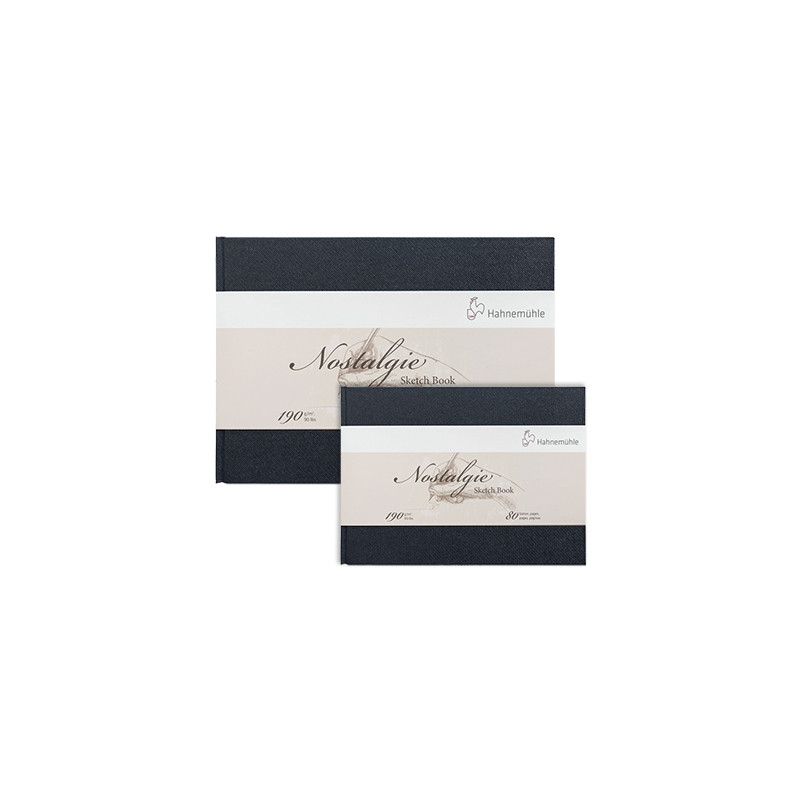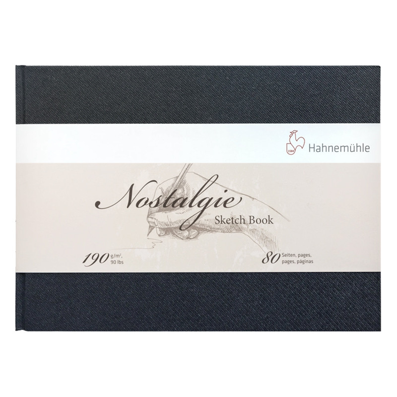 Nostalgie - blok szkicowy marki Hahnemuhle. 40 arkuszy, gramatura 190 g/m², format A6 (poziom) 14.8 x 10.5 cm.