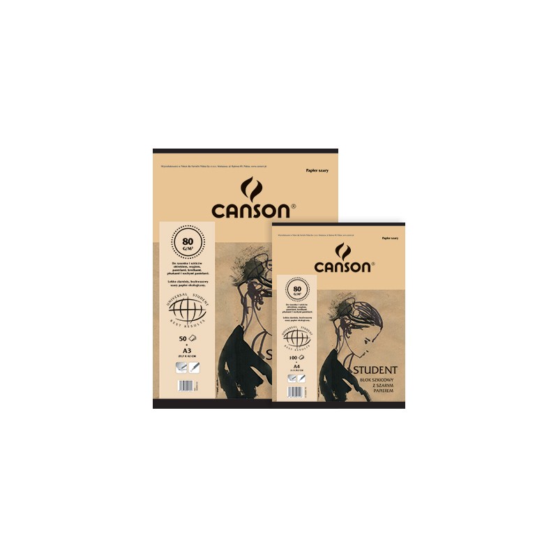 Blok szarego papieru do szkicu ECO marki Canson. Bezkwasowy, lekko ziarnisty papier w formacie A3. Zawiera 50 arkuszy, Gramatura papieru: 80g/m² .