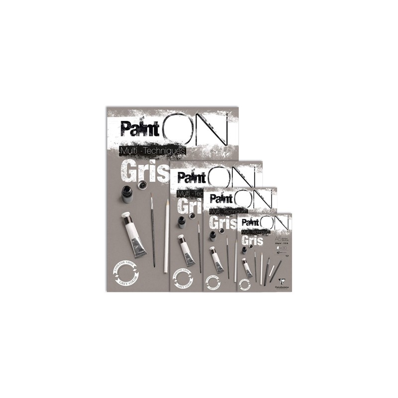 Paint ON Gris Multi–Techniques Clairefontaine A5 – uniwersalny blok typu mix media. Szary papier o gramaturze 250 g. Do rysunku i farb wodnych. 100% celulozy.
