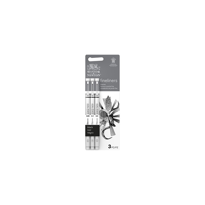 Fineliners Winsor & Newton. Zestaw 3 cienkopisów z czarnym, pigmentowym tuszem, wodoodpornym po wyschnięciu. Rozmiary w zestawie: 0.05 / 0.1 / 0.3. Więcej szczegółów