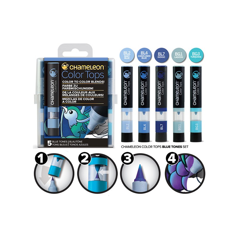 Zestaw Color Tops - 5 nakładek dedykowanych pisakom Chameleon Pens służące do tworzenia płynnych przejść kolorystycznych. Więcej szczegółów