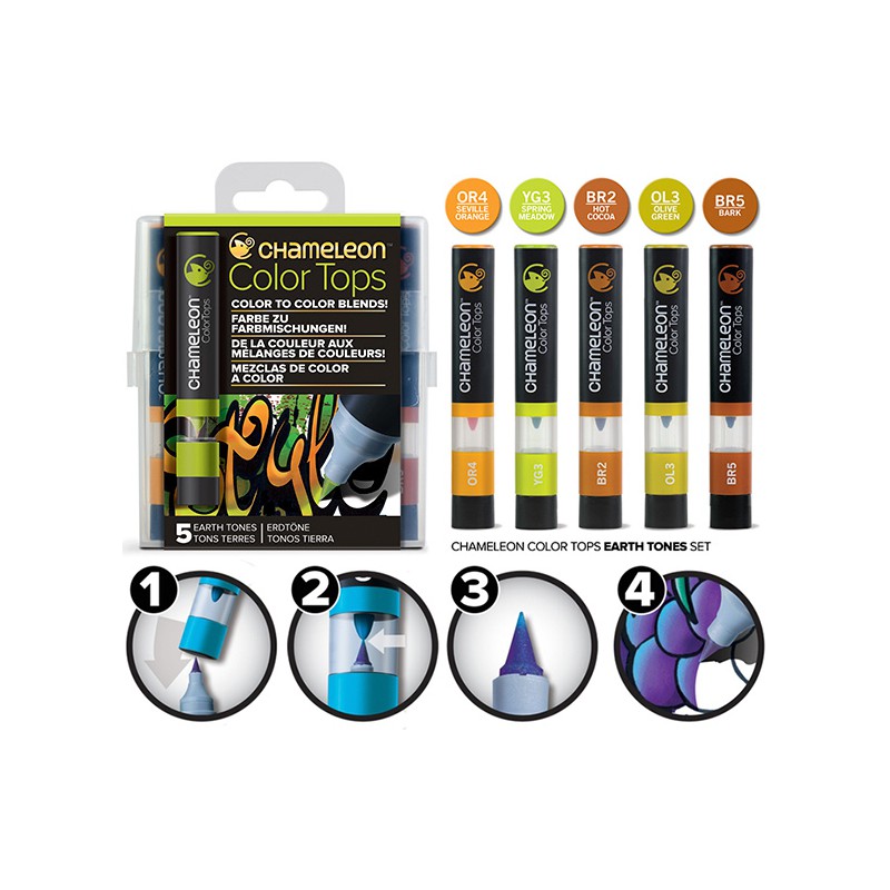 Zestaw Color Tops - 5 nakładek dedykowanych pisakom Chameleon Pens służące do tworzenia płynnych przejść kolorystycznych. Więcej szczegółów