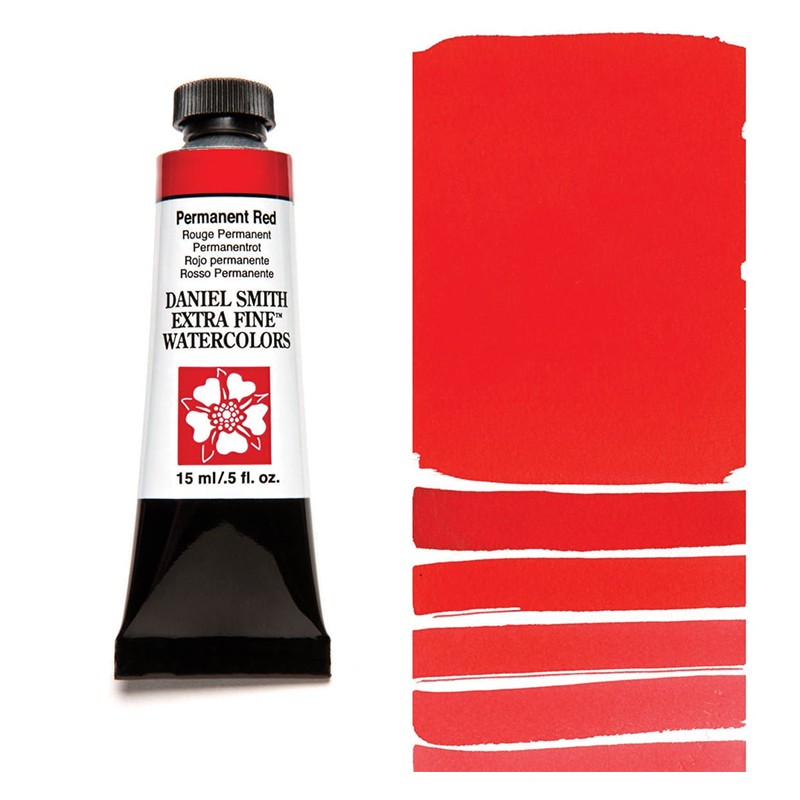 Permanent Red – farba akwarelowa extra-fine marki Daniel Smith. Tubka o pojemności 15 ml. Pigmenty: PR 170, F3RK-70