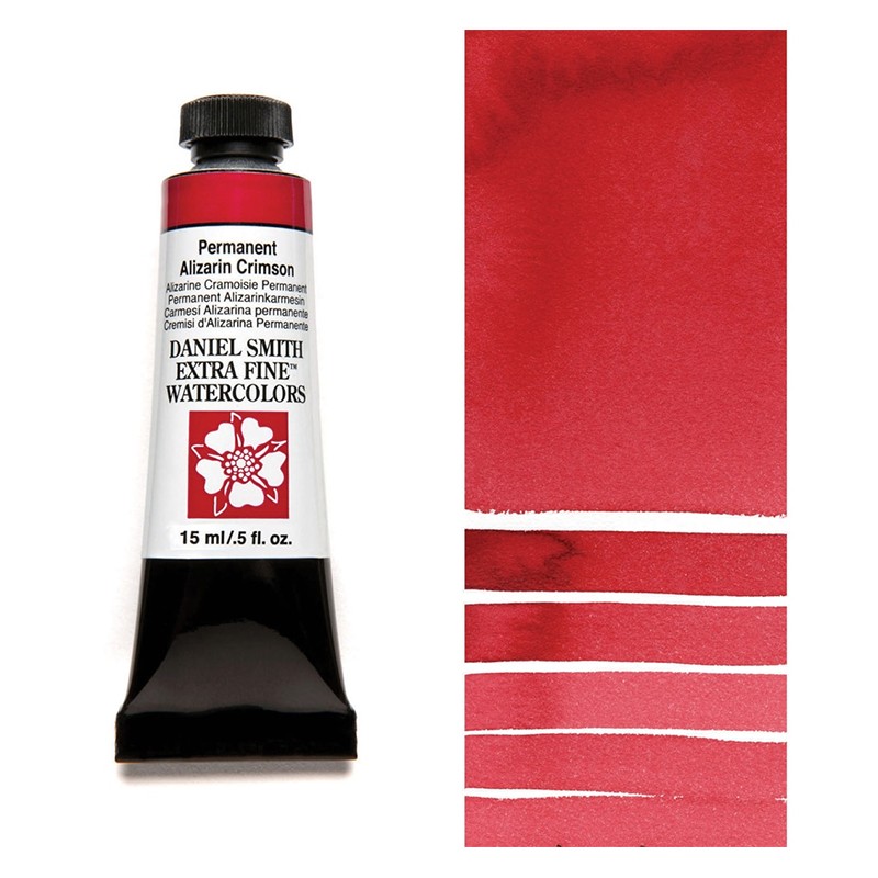 Permanent Alizarin Crimson – farba akwarelowa extra-fine marki Daniel Smith. Tubka o pojemności 15 ml. Pigmenty: PR 177, PV 19, PR149