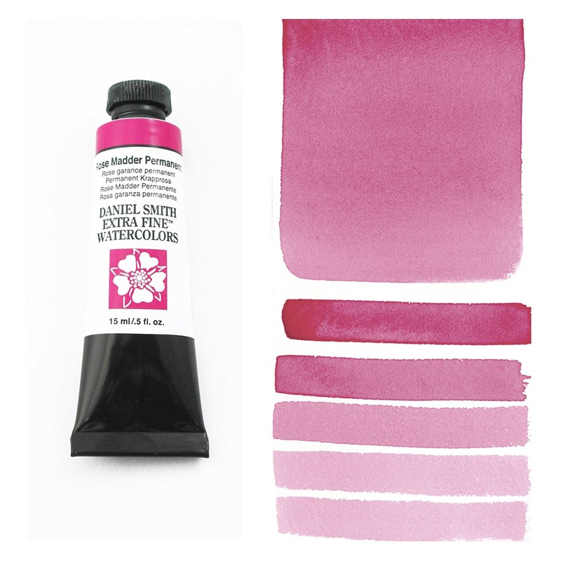 Rose Madder Permanent – farba akwarelowa extra-fine marki Daniel Smith. Tubka o pojemności 15 ml. Pigmenty: PR 209, PV 19, PR 202