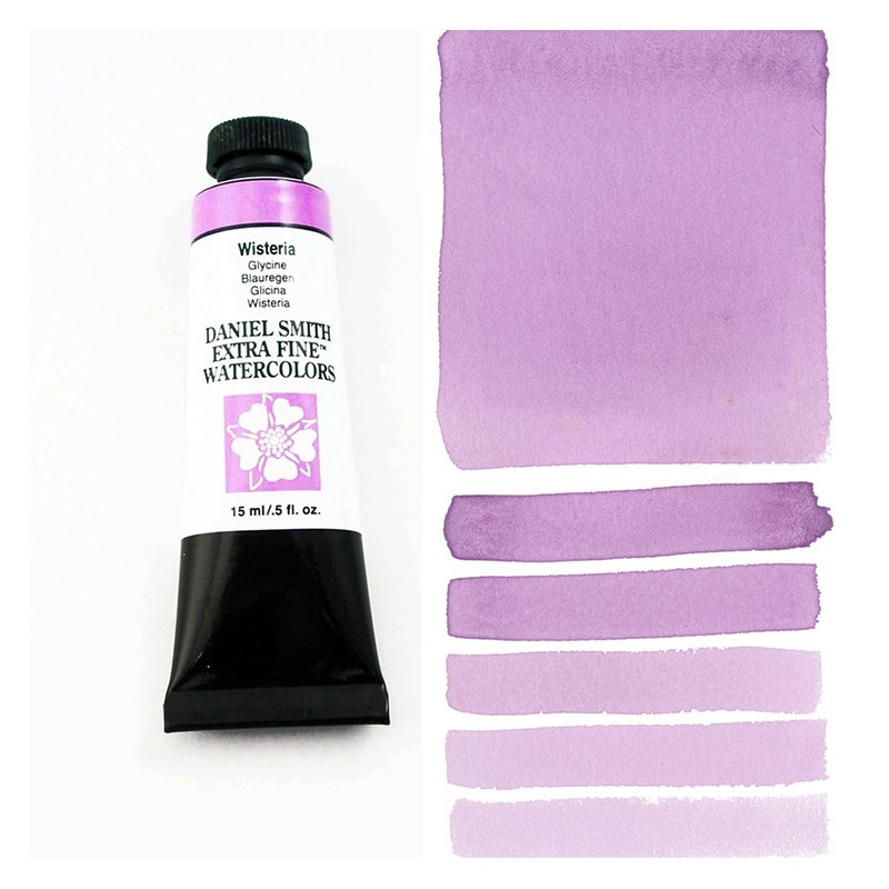 Wisteria – farba akwarelowa extra-fine marki Daniel Smith. Tubka o pojemności 15 ml. Pigmenty: PW6, PR 122