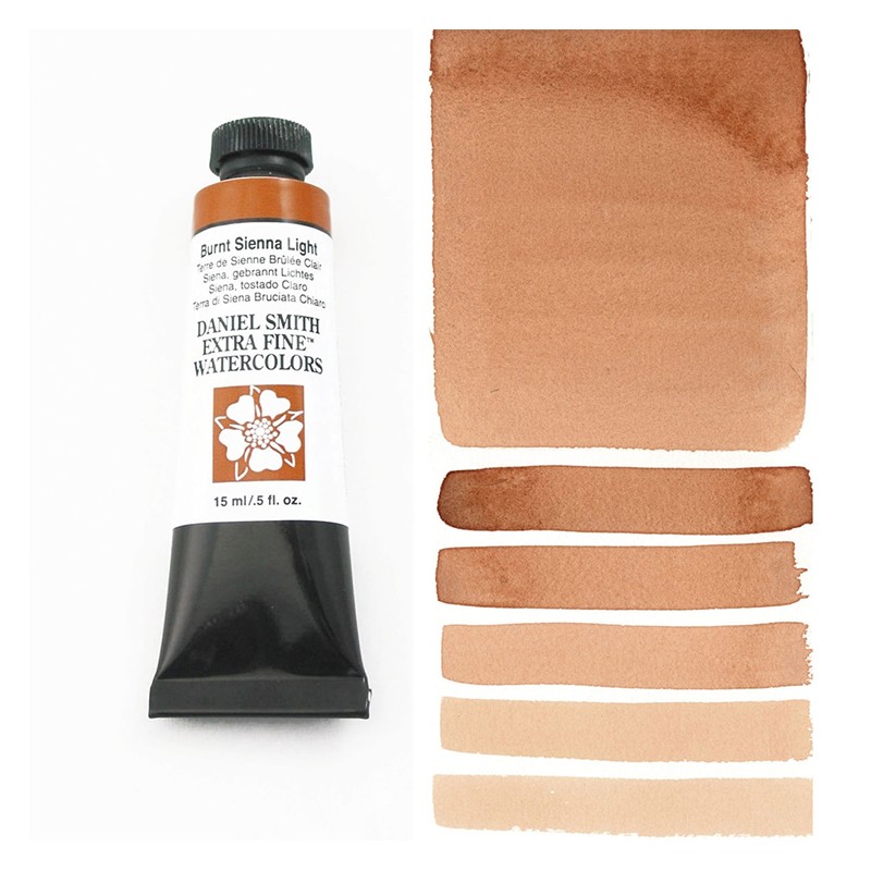 Burnt Sienna Light – farba akwarelowa extra-fine marki Daniel Smith. Tubka o pojemności 15 ml. Pigmenty: PR 101, PO 48