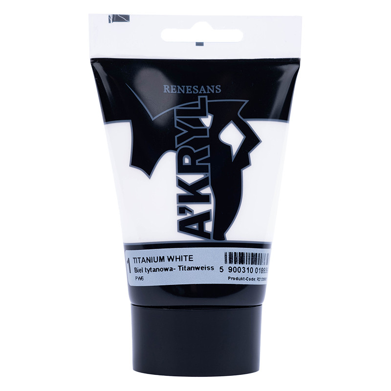 1 Biel tytanowa, farba akrylowa A'kryl Renesans 100ml