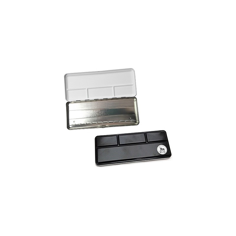 Metalowa kaseta na 12 półkostek farb akwarelowych marki Renesans. Uniwersalna, wygodna, trwała i poręczna kaseta wyposażona w paletę do mieszania kolorów – świetnie sprawdzi się w plenerze. Pozwala na skompletowanie własnego zestawu kolorów z farb dostępnych na sztuki.